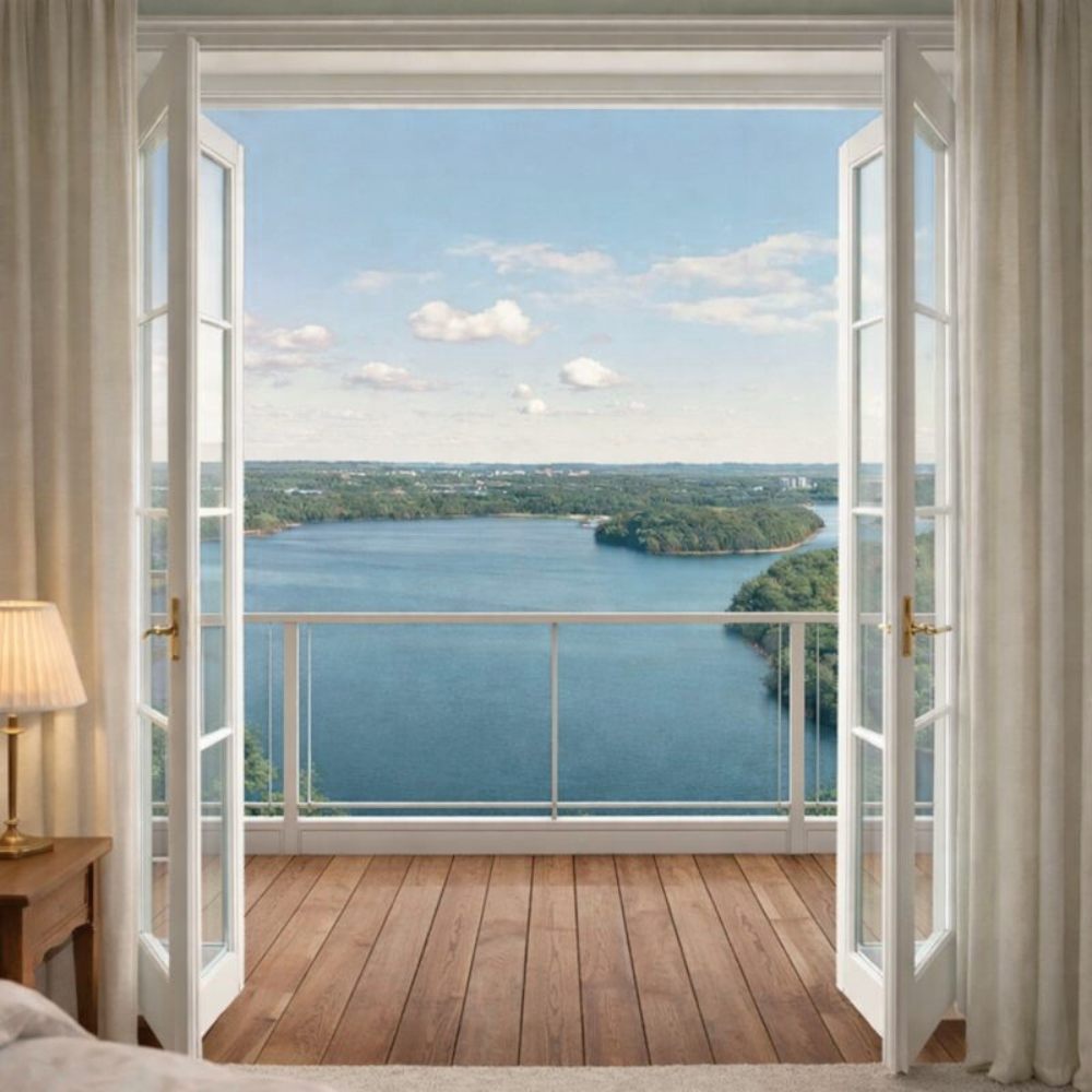 Stensjöstrand är platsen där kvalitet och stillhet möter det bekväma livet. De tre husvolymerna placeras varsamt i landskapet för att maximera ljus, siktlinjer och sjökänsla. Interiört möts du av tidlösa materialval som enstavsparkett, generösa fönster med spröjskänsla, höga socklar och vackra pardörrar – detaljer som för tankarna till Gunnebo slott men utförda med dagens standard. Utemiljöerna är genomtänkt gröna; markplanslägenheterna får egna trädgårdar medan högre våningar bjuder på stora balkonger och terrasser mot sjön.